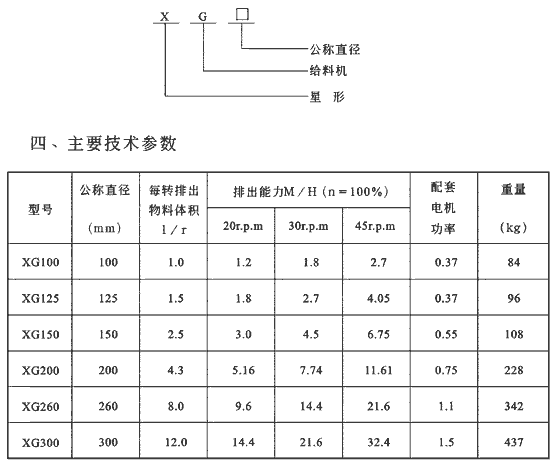 XG星形給料機(jī)型號(hào)及參數(shù)